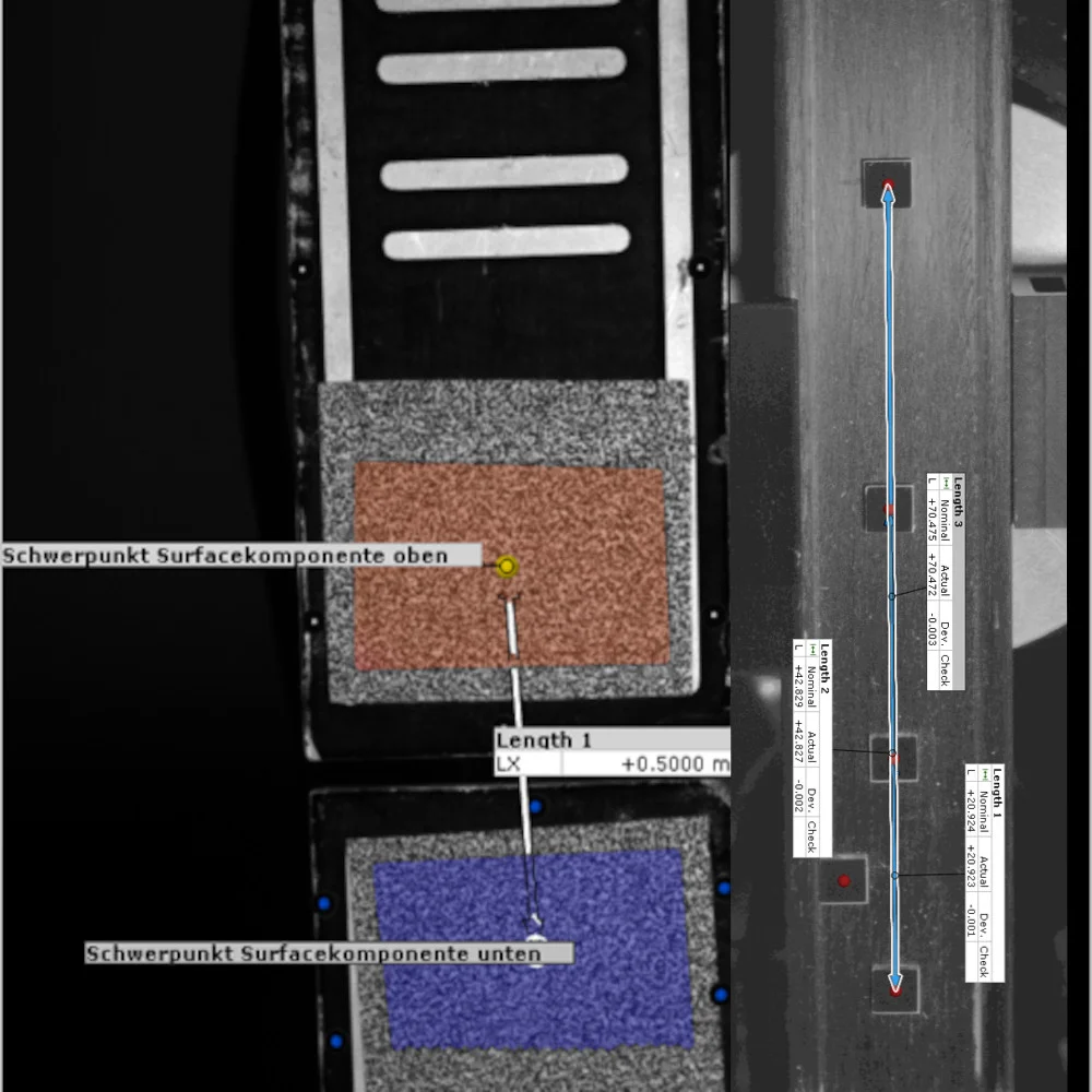VDI 2634 Part 1: Dans le volume de mesure du capteur DIC de stéréovision, il est positionné une règle photogrammétrie étalonnée. La distance entre les cibles (pastilles blanches sur un fond noir) est mesurée et comparée aux valeurs nominales. Cela définit la justesse de votre capteur DIC de stéréocorrélation.
