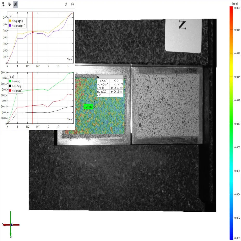 Macro et Modèles de mesure: Notre équipe peut vous fournir l’artefact pour le suivi périodique, mettre en place pour vous la procédure, les rapports de mesure et même rédiger la macro qui permettra de faciliter et surtout standardiser le suivi qualité et métrologique de votre système DIC par stéréocorrélation des images.